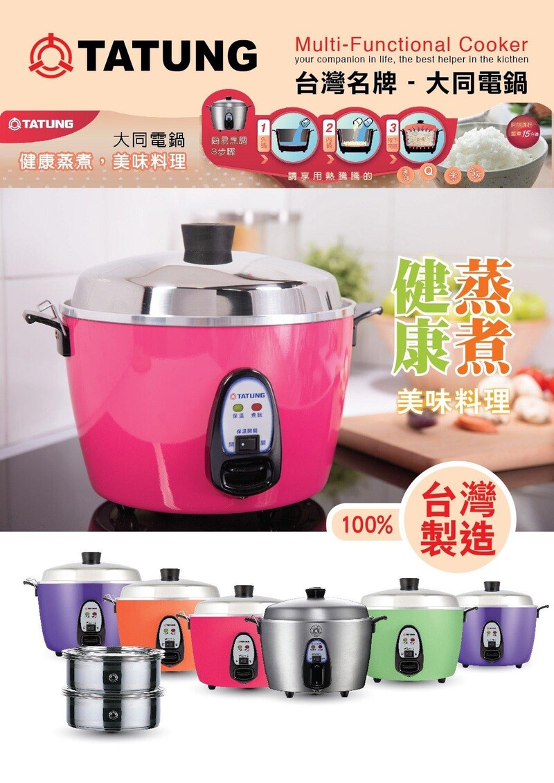 大同 電鍋 TAC-6GS TATUNG - Cooker TAC-6GS 功率: 600 W 保溫電功率: 40W 份量: 6人份 台灣製造 * 鍋蓋,內鍋,內鍋蓋,蒸盤均為 * 食品級SUS#304不銹鋼材質 * 具保溫切換開關,免拔插頭 * 雙重覆蓋電源線,雙重安全保護 * 煮飯 / 粥,蒸,滷,燉多用途 * 主體:外鍋、內鍋、鍋蓋各一 * 主體:外鍋、內鍋、鍋蓋各一 * 配件:內鍋蓋、蒸盤、量米杯、飯匙各一 取貨地址 九龍油塘高輝道7號高輝工業大廈3字樓