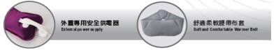 HOMEY 暖水袋 功率: 650W 舒適柔軟腰帶布套 *8-12分鐘快速加熱, 2-8小時持續保暖 *外置專用安全供電器 *防乾燒保護 *使用更安全更可靠 *特設內部溫控器