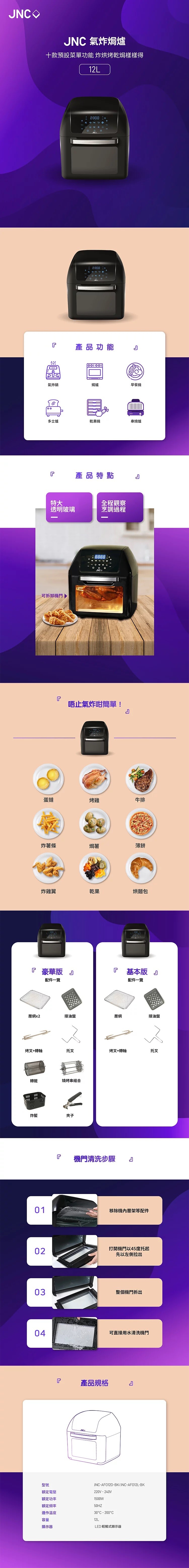 當前位置: 首頁 > 家庭電器 > 廚房電器 > 光波爐/氣炸鍋/燒烤爐 > [免費送貨] JNC 氣炸焗爐 12L (基本版) JNC-AFO12L-BK