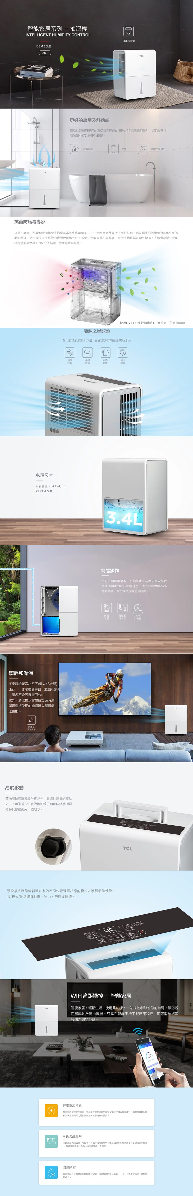 · 抽濕量:28升/天 (測試條件:30℃/27.1℃ (RH80%))